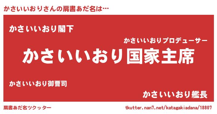 | 女子向けラノベタイトル風あだ名 | 『かさいいおりの雑貨屋さん』 |
