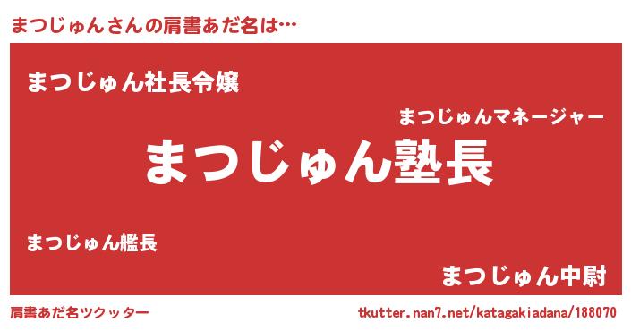 | 男性向けラノベタイトル風あだ名 | 『まつじゅんの嫁は女の子じゃないと思った?』 |