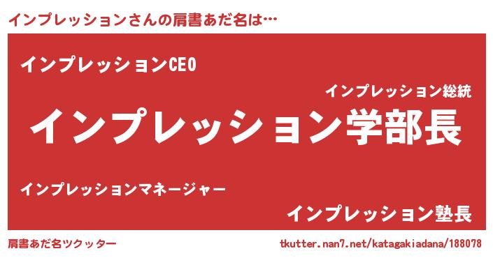 女子向けラノベタイトル風あだ名 | 『死神インプレッションの再婚』 |