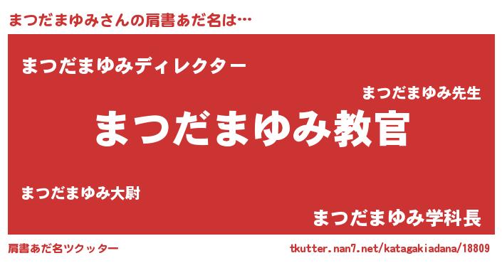 | ヒーロー風カッコイイあだ名 | 『仮面マツダー』『愛の使者まつだまゆみ』 |