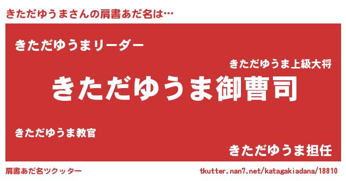 | 男性向けラノベタイトル風あだ名 | 『きただゆうまの憂鬱』 |