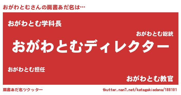 | ヒーロー風カッコイイあだ名 | 『正義の使者おがわとむ』『仮面オガダー』 |