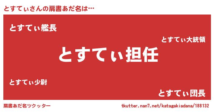 | ヘコむあだ名 | 『とすてぃ(苦笑)』『とすっぺ』 |