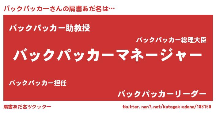 | ヒーロー風カッコイイあだ名 | 『友情の使者バックパッカー』 |