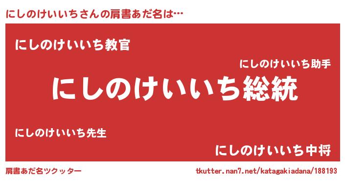 | ヘコむあだ名 | 『にしのけいいち(遠い目)』『なまこ酢』 |