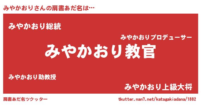 | ヒーロー風カッコイイあだ名 | 『仮面ミヤダー』『天空の使者みやかおり』 |