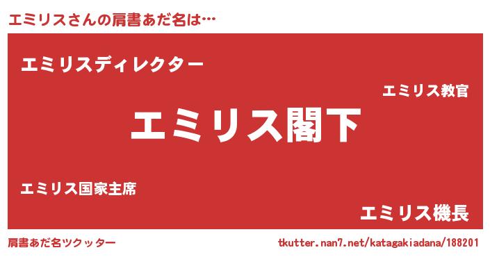 | 意味不明あだ名 | 『自称エミリス』『エミリスフォーエバー』 |