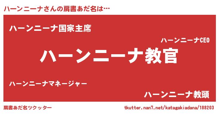 | 欧米人風あだ名 | 『ダレノガレハーンニーナ』 |