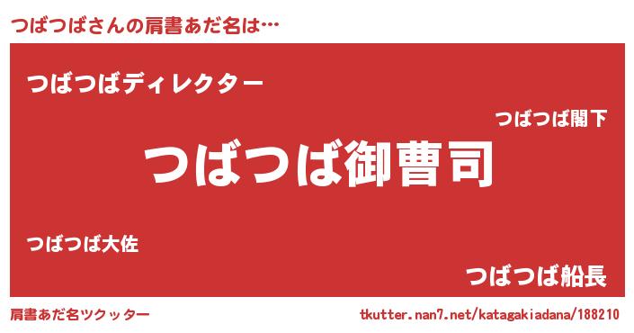 | ヘコむあだ名 | 『つばっふぃ~』『つば太郎』 |