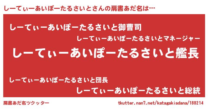 | 意味不明あだ名 | 『ペロリンしーてぃーあいぽーたるさいと』 |