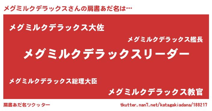 | 男性向けラノベタイトル風あだ名 | 『メグミルクデラックスの嫁は女の子じゃないと思った?』 |