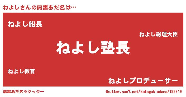 | 欧米人風あだ名 | 『ウサインねよし』『アンジェラ・ねよし』 |