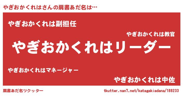 | 意味不明あだ名 | 『とにかく怪しいやぎおかくれは』 |