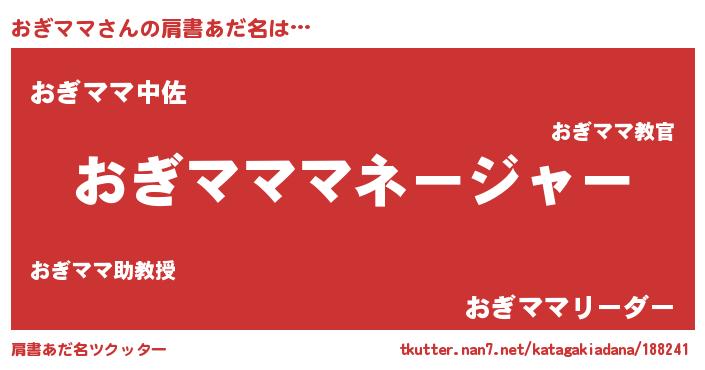 | 胡散臭い通販商品みたいなあだ名 | 『全米が絶賛したサプリメント…その名も「おぎママ」』 |