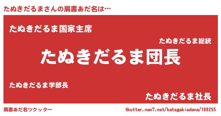 | ヒーロー風カッコイイあだ名 | 『暗黒騎士タヌ』『スーパータヌキダルマ』 |