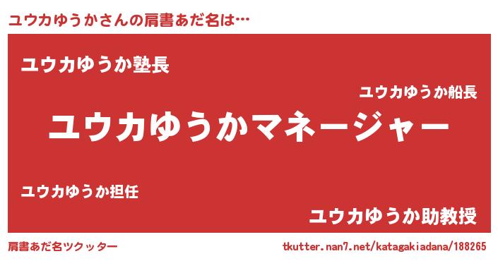 | 意味不明あだ名 | 『とにかく怪しいユウカゆうか』 |
