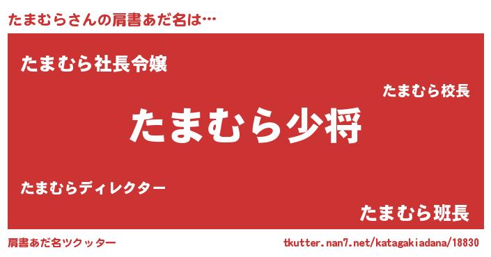| 男性向けラノベタイトル風あだ名 | 『タマムラスレイヤー』 |