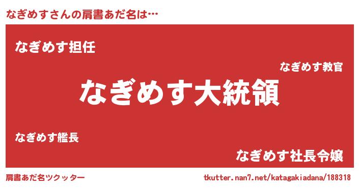 | ポケモン風あだ名 | 『ナギメダネ』『ゼニナギ』 |