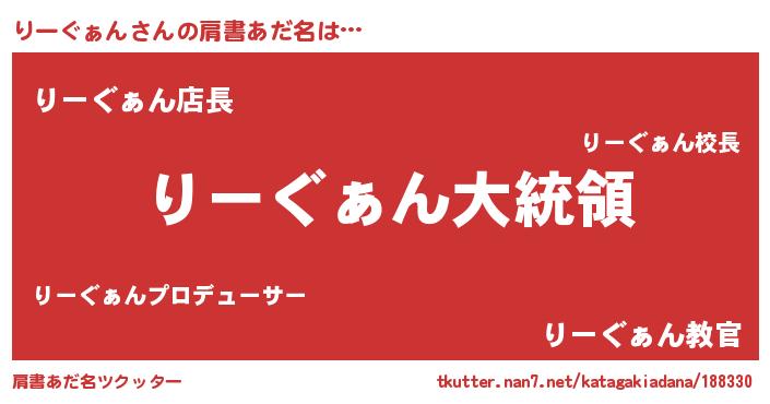 | 意味不明あだ名 | 『りーぐぁんフォーエバー』 |