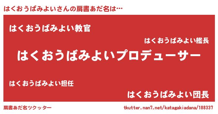 | 意味不明あだ名 | 『住所不定無職はくおうばみよい(91歳)』 |