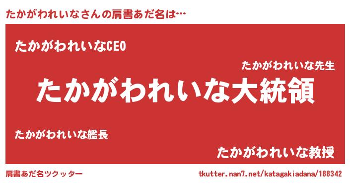 | 男性向けラノベタイトル風あだ名 | 『やはりたかがわれいなの青春ラブコメはまちがっている 』 |