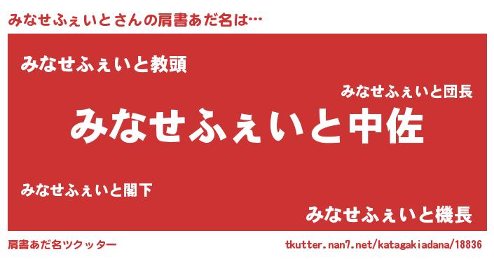 | 男性向けラノベタイトル風あだ名 | 『転生したらみなせふぇいとだった件』 |