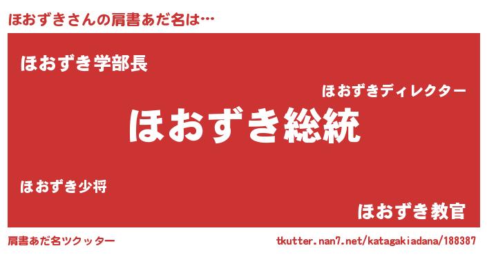 | 男性向けラノベタイトル風あだ名 | 『Re:ほおずきから始める異世界生活』 |