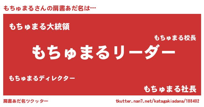 | 男性向けラノベタイトル風あだ名 | 『ダンジョンにもちゅまるを求めるのは間違っているだろうか』 |