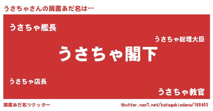 | 男性向けラノベタイトル風あだ名 | 『Re:うさちゃから始める異世界生活』 |