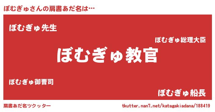 | 男性向けラノベタイトル風あだ名 | 『魔弾の王とぼむぎゅ』『ぼむぎゅの憂鬱』 |