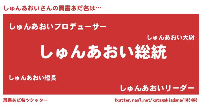 | 男性向けラノベタイトル風あだ名 | 『Re:しゅんあおいから始める異世界生活』 |