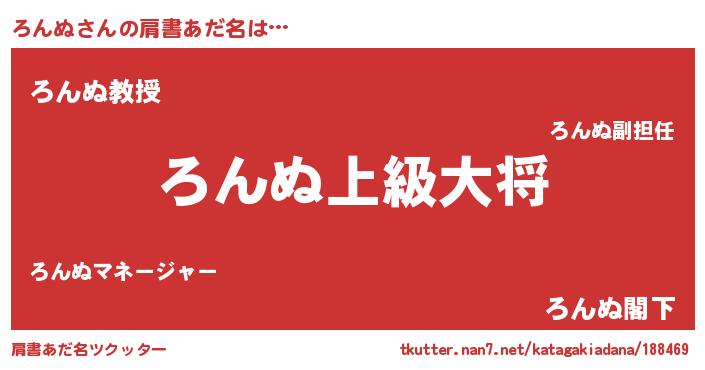 | 男性向けラノベタイトル風あだ名 | 『転生したらろんぬだった件』 |