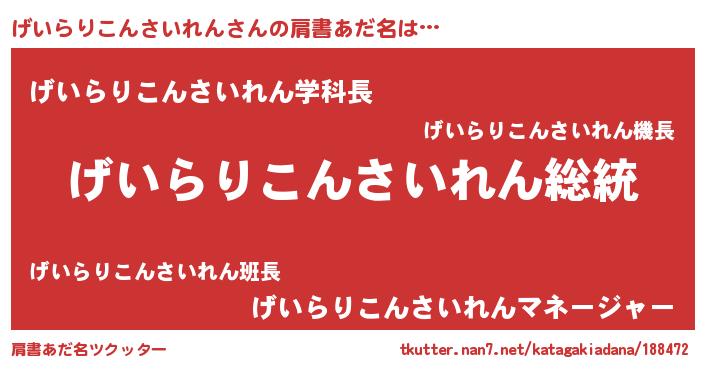 | 男性向けラノベタイトル風あだ名 | 『Re:げいらりこんさいれんから始める異世界生活』 |