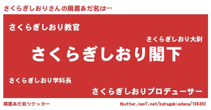 | 意味不明あだ名 | 『自称さくらぎしおり』 |