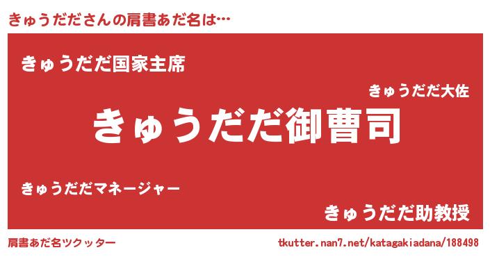 | 女子向けラノベタイトル風あだ名 | 『きゅうだだ姫と円卓の騎士』 |