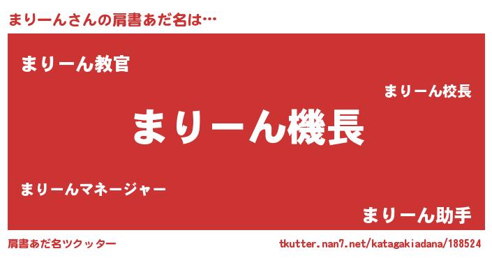 | 欧米人風あだ名 | 『まりーん・ステッグマイヤー』 |