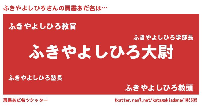 | ヘコむあだ名 | 『ふきやよしひろ(爆)』『ふきぷりん』 |
