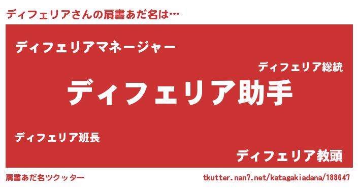 | 可愛いあだ名 | 『ディちゅっちゅ』『ディフェリアママ』 |