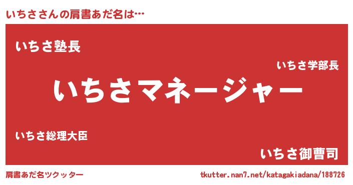 | 意味不明あだ名 | 『とにかく怪しいいちさ』 |