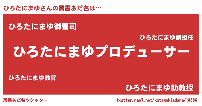 | 男性向けラノベタイトル風あだ名 | 『ひろたにまゆに滅ぼされるだけの簡単なお仕事です』 |