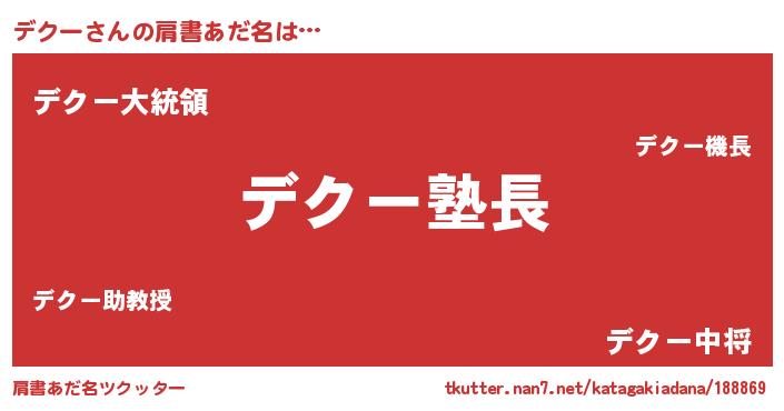 | 意味不明あだ名 | 『とにかく怪しいデクー』『自称デクー』 |