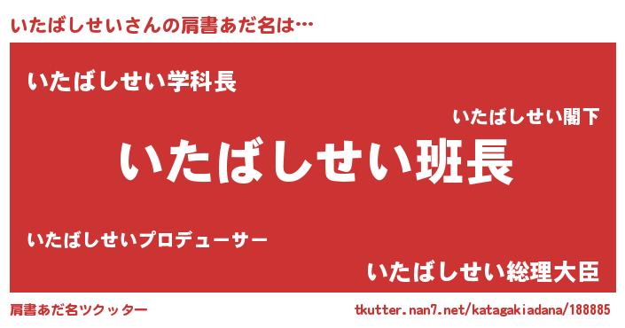 | 女子向けラノベタイトル風あだ名 | 『いたばしせいの卵を拾いまして』 |