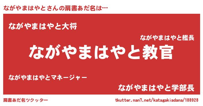 | 男性向けラノベタイトル風あだ名 | 『この素晴らしい世界にながやまはやとを!』 |