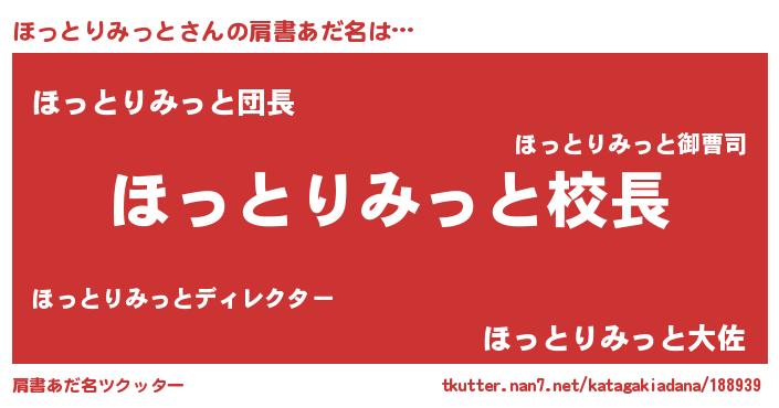 | ヘコむあだ名 | 『ほっとりみっと(爆)』『ほっお』 |