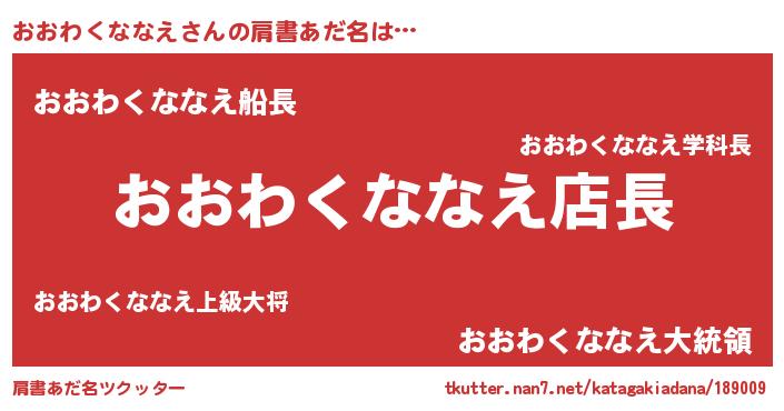 | 男性向けラノベタイトル風あだ名 | 『おおわくななえの憂鬱』 |