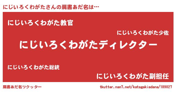 | ヘコむあだ名 | 『にじいろくわがた(笑)』『にじにー』 |