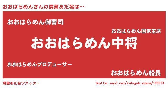 | 男性向けラノベタイトル風あだ名 | 『転生したらおおはらめんだった件』 |