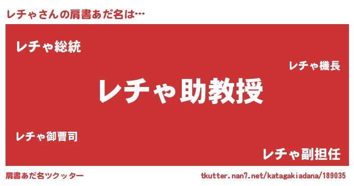 | ヘコむあだ名 | 『レチゃ(笑)』『レチもー』 |