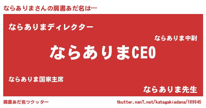 | ヘコむあだ名 | 『ならふぇ~』『ならありま(笑)』 |