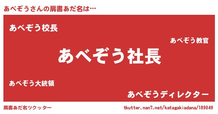 | 胡散臭い通販商品みたいなあだ名 | 『億万長者になれるブレスレット…その名も「あべぞう」』 |